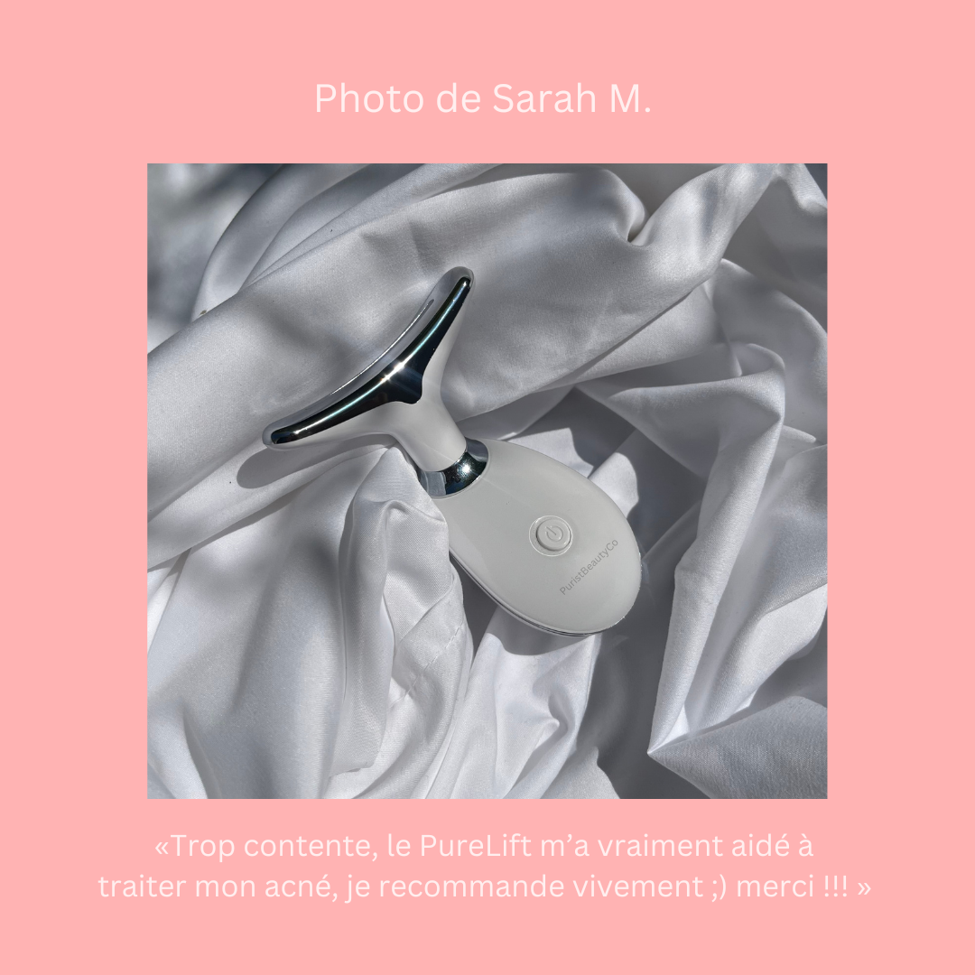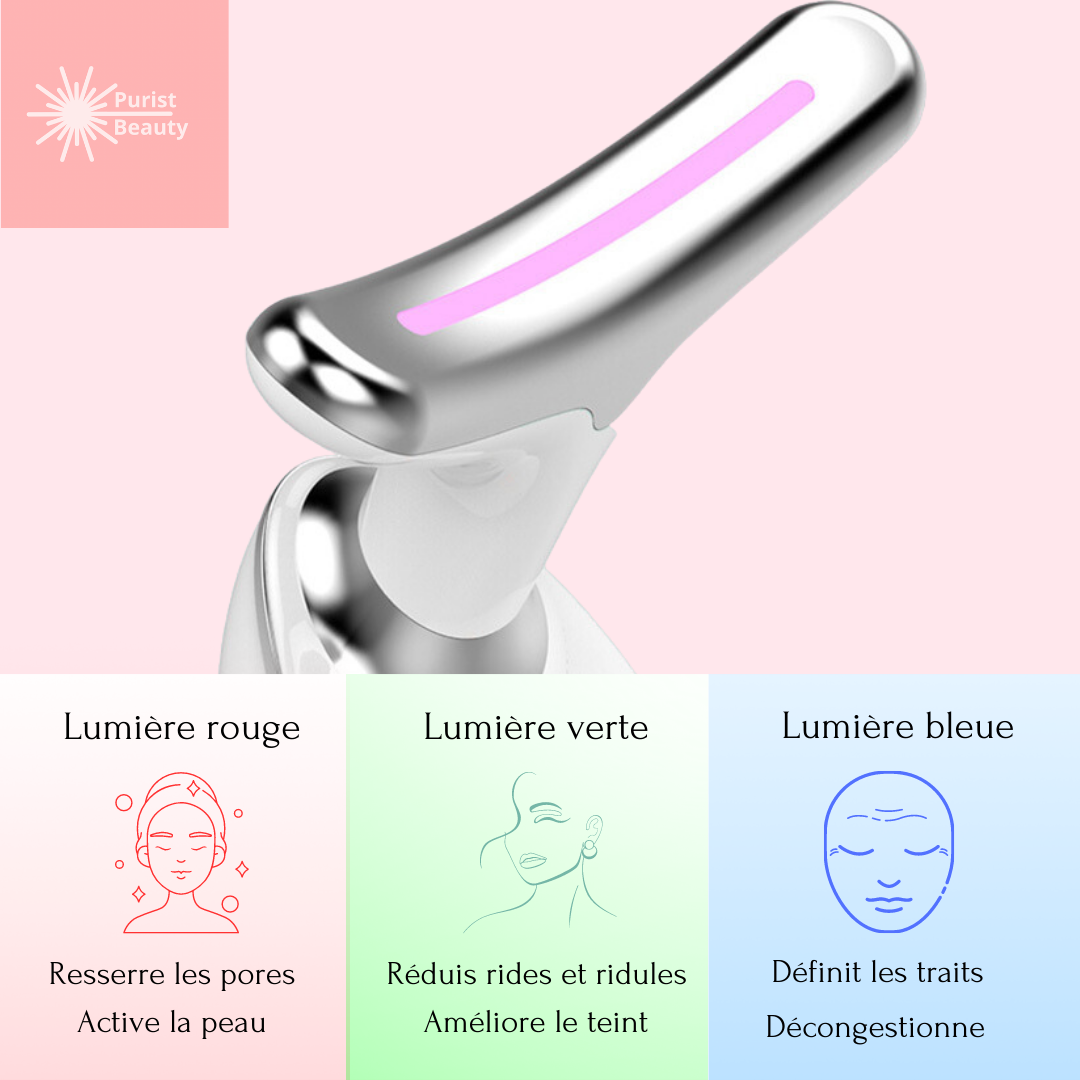 Mit PureLift® profitieren Sie von der Technologie eines Instituts direkt bei Ihnen zu Hause. Das Gerät wirkt sich auf das Wohlbefinden Ihrer Haut aus und formt dank seiner geschwungenen Form Ihr Gesicht.